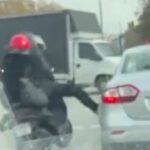 İstanbul Fatih'te motosiklet sürücüsü trafikte tartıştığı otomobilin kapısına tekme attı.Olay, otomobil sürücüsünün cep telefonunun alınarak fırlatılmasıyla devam etti.Motosiklet sürücüsü, olay sonrası hızla bölgeden uzaklaştı. AI özetimiz yardımcı oldu mu? Bize bildirin. İstanbul'un Fatih ilçesi Millet Caddesi'nde kırmızı ışıkta duran motosiklet…